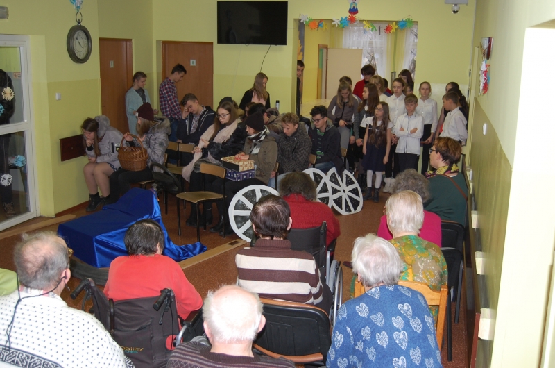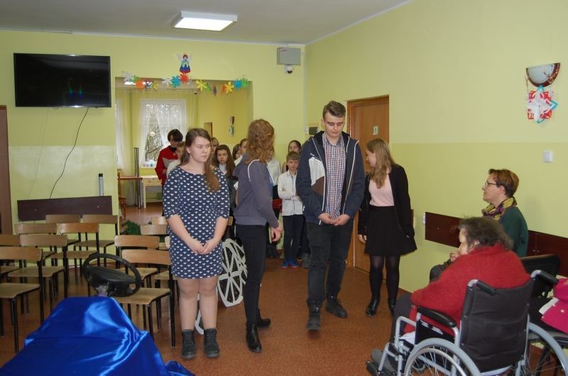 Dnia 20 grudnia gościła u nas młodzież z III klasy Gimnazjum w Świekatowie oraz z klasy VI Szkoły Podstawowej w Świekatowie wraz z opiekunami: Panią Anitą Tucholską, Gabrielą Łysek oraz Adrianą Milczewską. Kierownik działu opiekuńczego – Pani Lucyna Wojtasińska powitała gości, którzy w licznym gronie przybyli do naszego domu. Przedstawienie bardzo podobało się naszym Mieszkańcom i na koniec Przewodnicząca Samorządu Mieszkańców – Pani Władysława Kamińska wręczyła wszystkim przybyłym gościom słodki upominek. Dziękujemy za odwiedzimy i zapraszamy częściej.