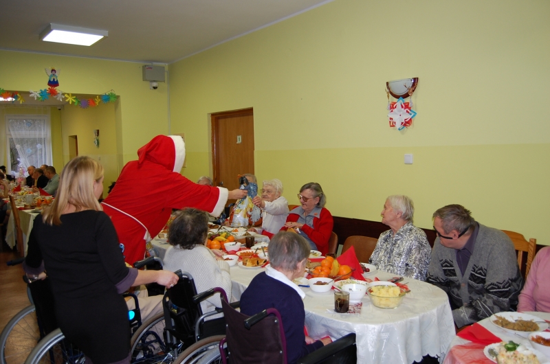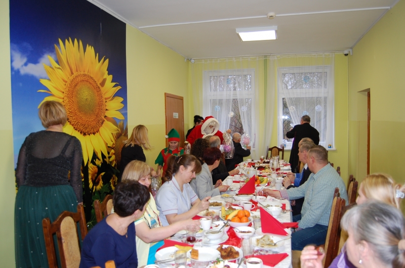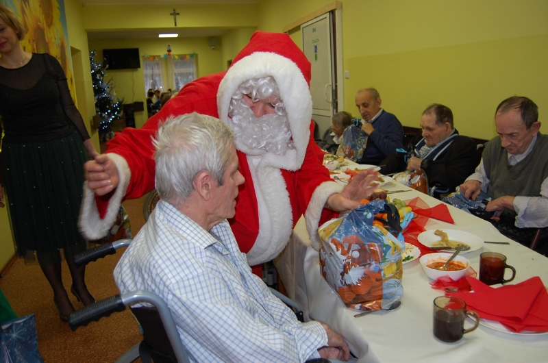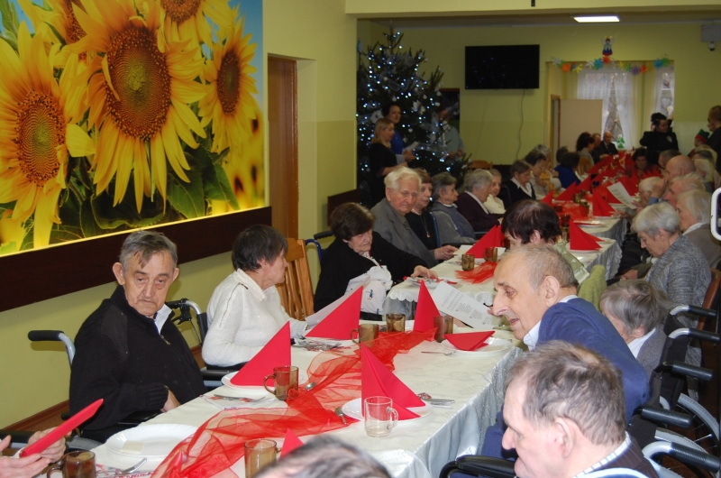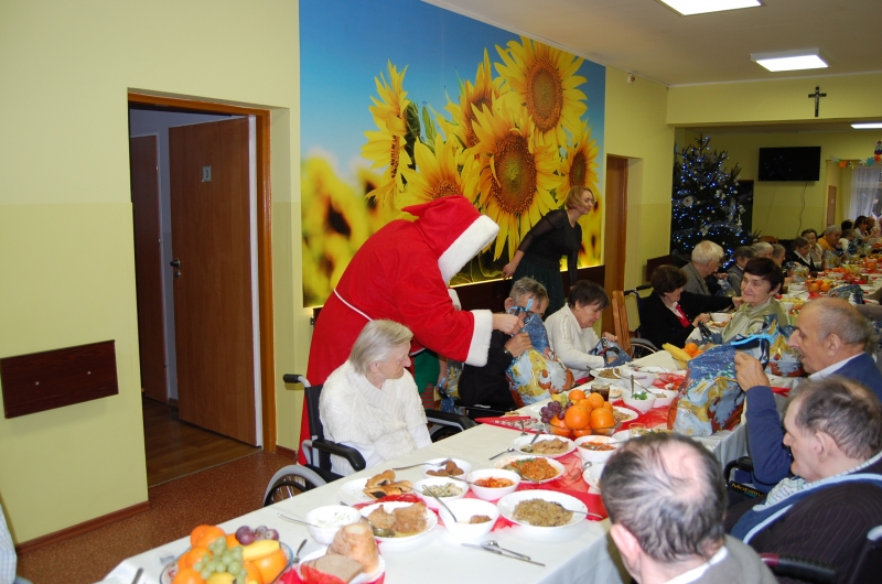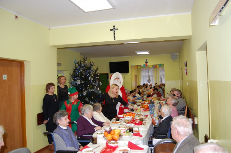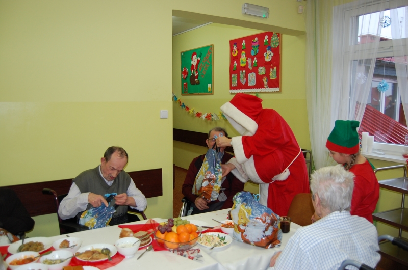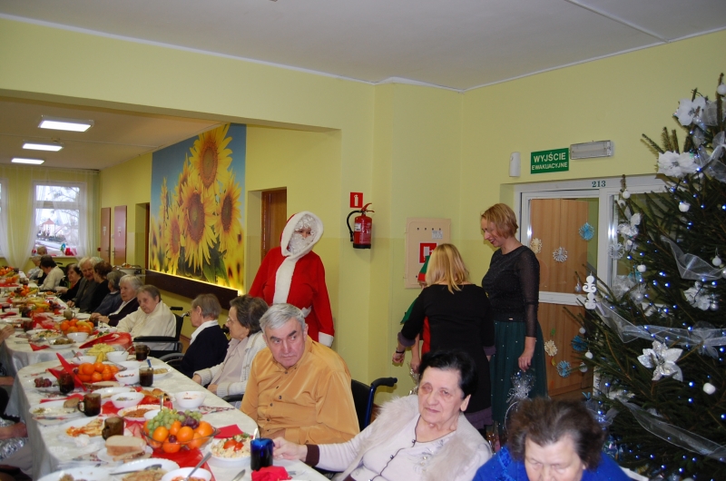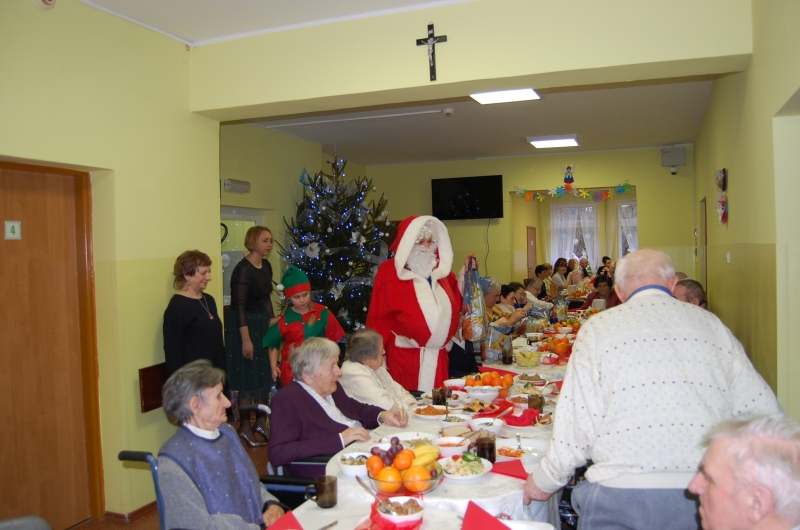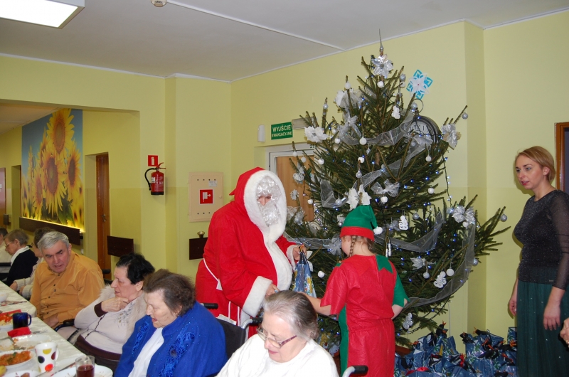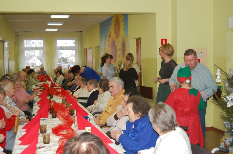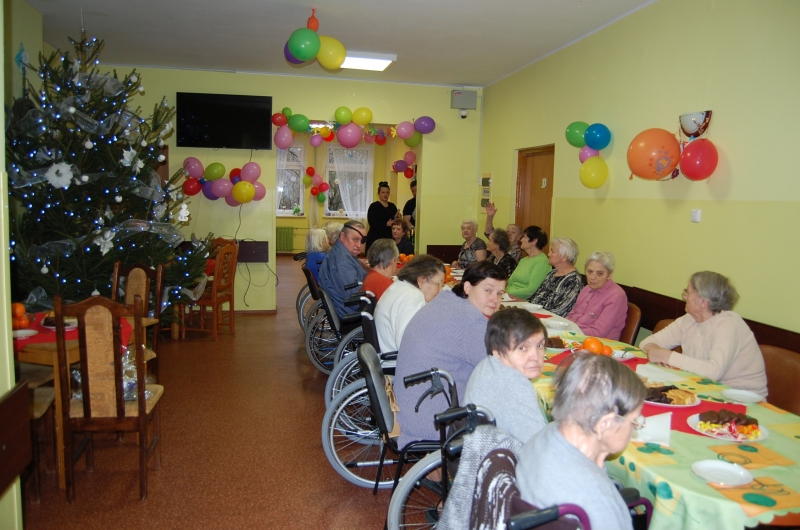 Jak co roku 24 grudnia wszyscy wspólnie zasiadamy przy stole i obchodzimy te piękne święta. Na uroczystość Wigilijną w naszym domu przybyli: Starosta Świecki -Pan Franciszek Koszowski, Wójt Gminy Pruszcz – Pan Dariusz Wądołowski, były Przewodniczący Zgromadzenia Związku Gmin – Pan Zbigniew Jagła, Kierownik Gminnego Ośrodka Pomocy Społecznej – Pani Magdalena Jaworska, Pani doktor – Danuta Jarosz, Ksiądz Proboszcz – Jerzy Mroczyński oraz Ksiądz Franciszek Kamecki oraz Wolontariusze: Krzysztof Pardo, Rafał Stachowski i Maja Rzondtkowska. Dyrektor Sylwia Siadkowska powitała wszystkich zgromadzonych Gości, Mieszkańców i Pracowników domu, złożyła serdeczne życzenia aby każdy czuł się u nas jak w prawdziwym domu i aby nie zabrakło nikogo z nas za rok przy tym stole. Życzenia składali również Wójt Gminy Pruszcz oraz Starosta Świecki, życząc wszystkim dużo zdrowia. Kuchnia przygotowała pyszne potrawy wigilijne, oprawę artystyczną, kolędy i prezenty przygotowały Panie z terapii zajęciowej: Magdalena Bauza oraz Barbara Hiller. Był też Gwiazdor, który jak co roku wszystkich obdarował prezentami.