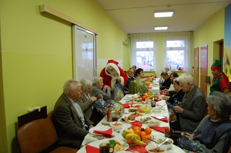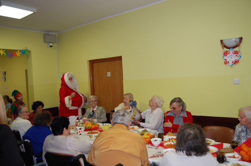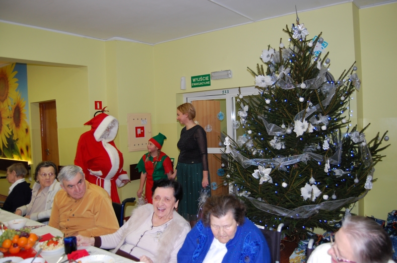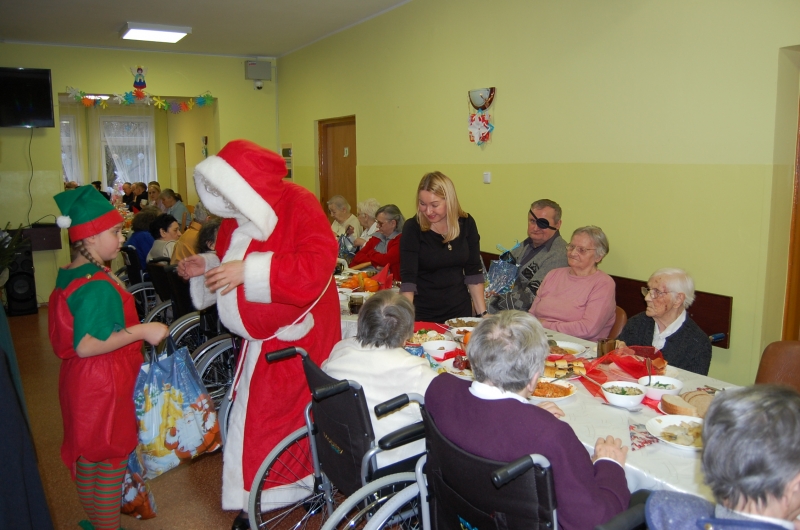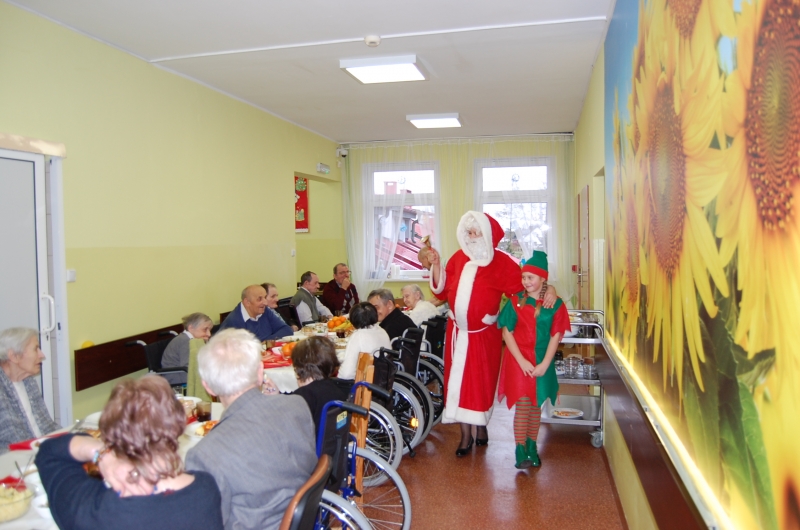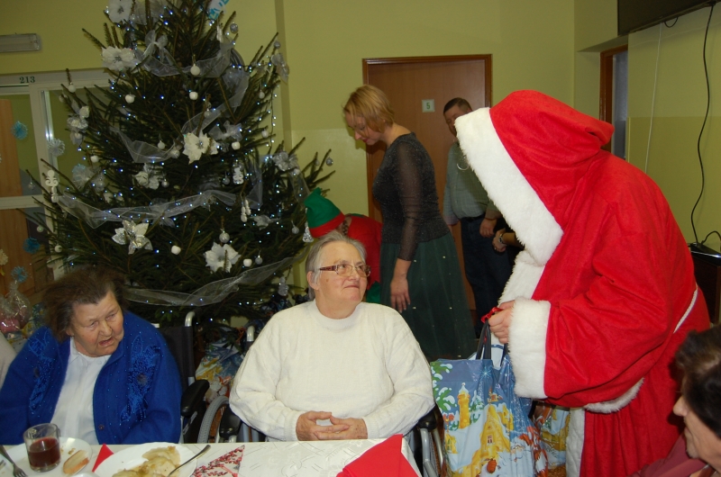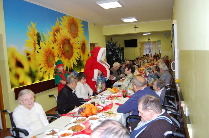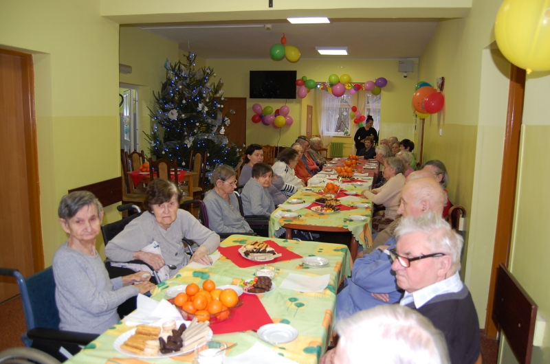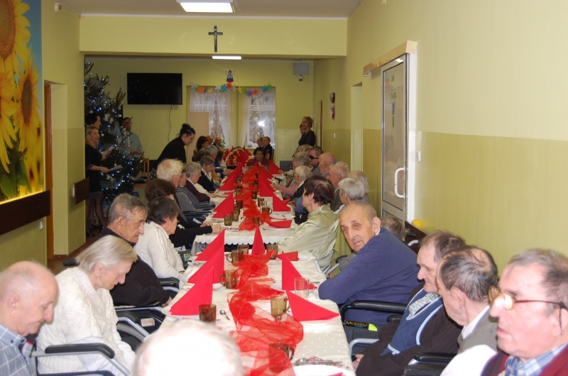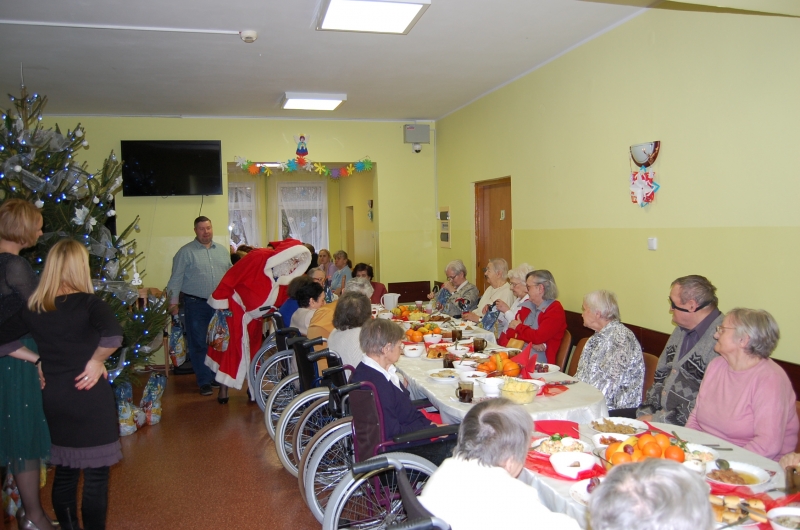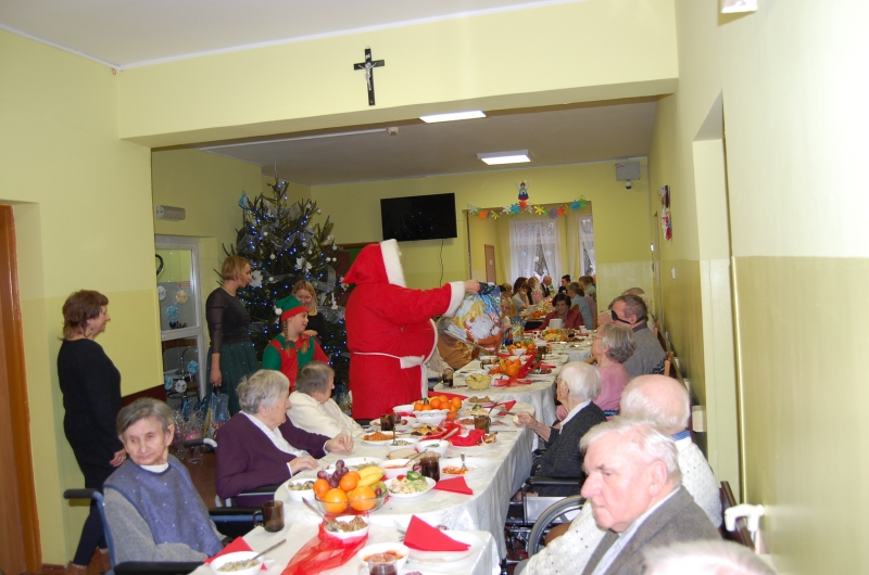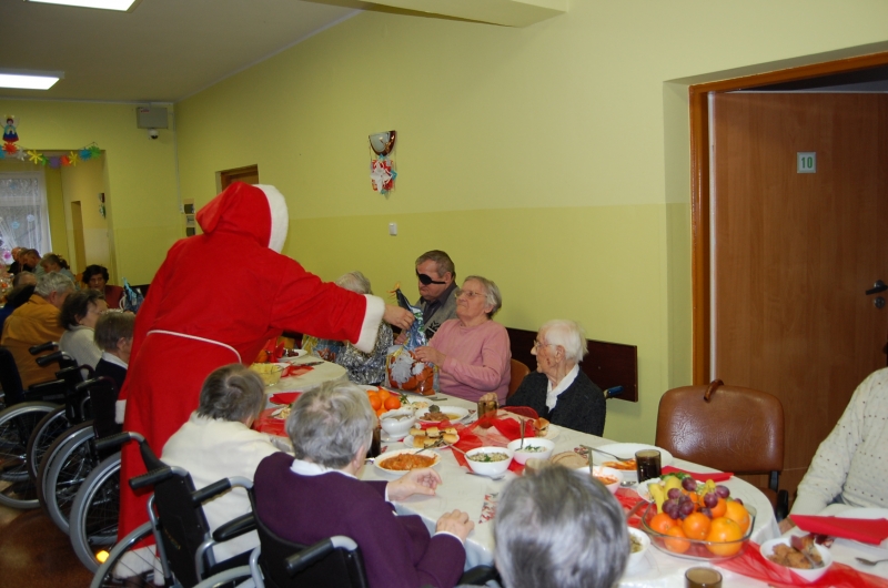 Jak co roku 24 grudnia wszyscy wspólnie zasiadamy przy stole i obchodzimy te piękne święta. Na uroczystość Wigilijną w naszym domu przybyli: Starosta Świecki -Pan Franciszek Koszowski, Wójt Gminy Pruszcz – Pan Dariusz Wądołowski, były Przewodniczący Zgromadzenia Związku Gmin – Pan Zbigniew Jagła, Kierownik Gminnego Ośrodka Pomocy Społecznej – Pani Magdalena Jaworska, Pani doktor – Danuta Jarosz, Ksiądz Proboszcz – Jerzy Mroczyński oraz Ksiądz Franciszek Kamecki oraz Wolontariusze: Krzysztof Pardo, Rafał Stachowski i Maja Rzondtkowska. Dyrektor Sylwia Siadkowska powitała wszystkich zgromadzonych Gości, Mieszkańców i Pracowników domu, złożyła serdeczne życzenia aby każdy czuł się u nas jak w prawdziwym domu i aby nie zabrakło nikogo z nas za rok przy tym stole. Życzenia składali również Wójt Gminy Pruszcz oraz Starosta Świecki, życząc wszystkim dużo zdrowia. Kuchnia przygotowała pyszne potrawy wigilijne, oprawę artystyczną, kolędy i prezenty przygotowały Panie z terapii zajęciowej: Magdalena Bauza oraz Barbara Hiller. Był też Gwiazdor, który jak co roku wszystkich obdarował prezentami.