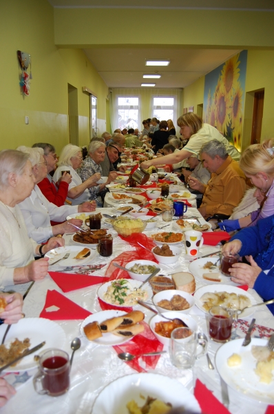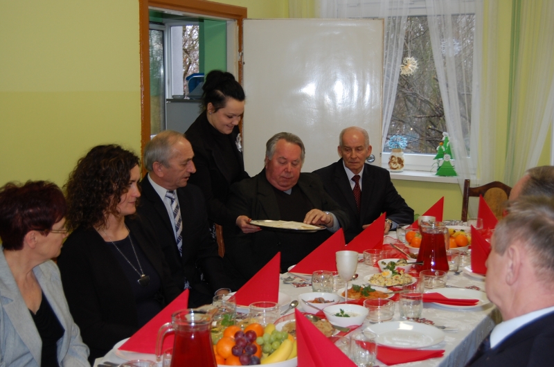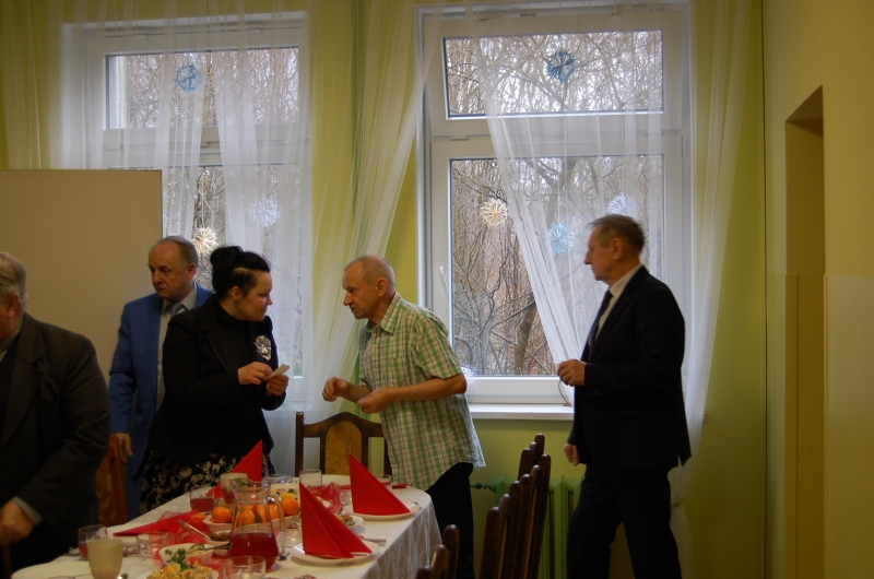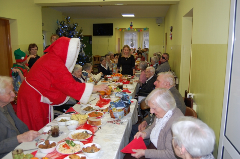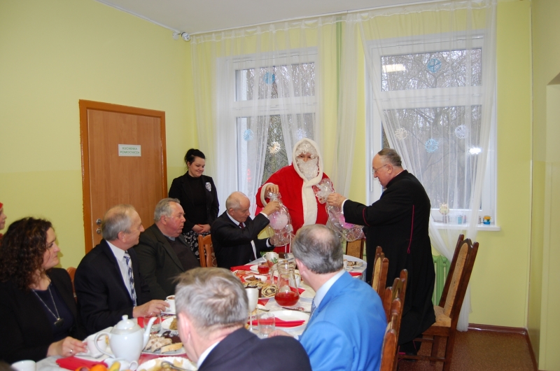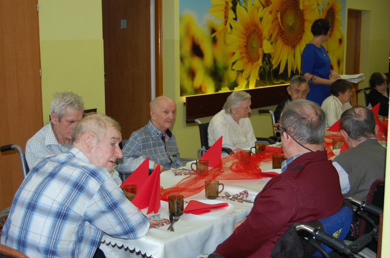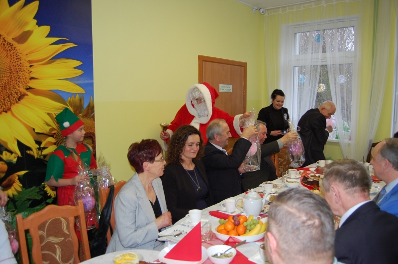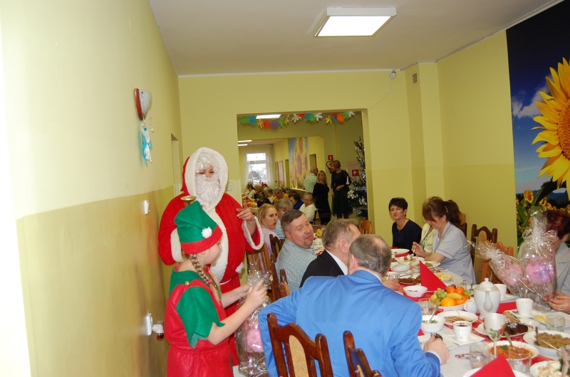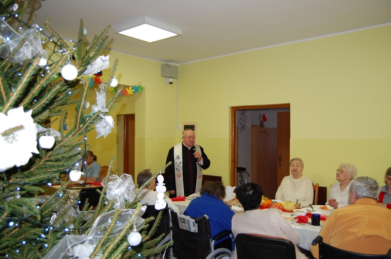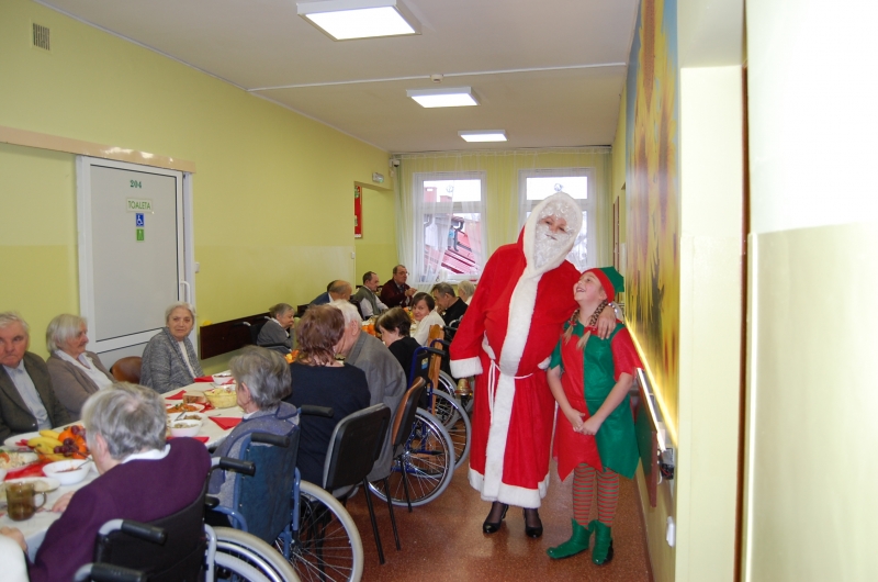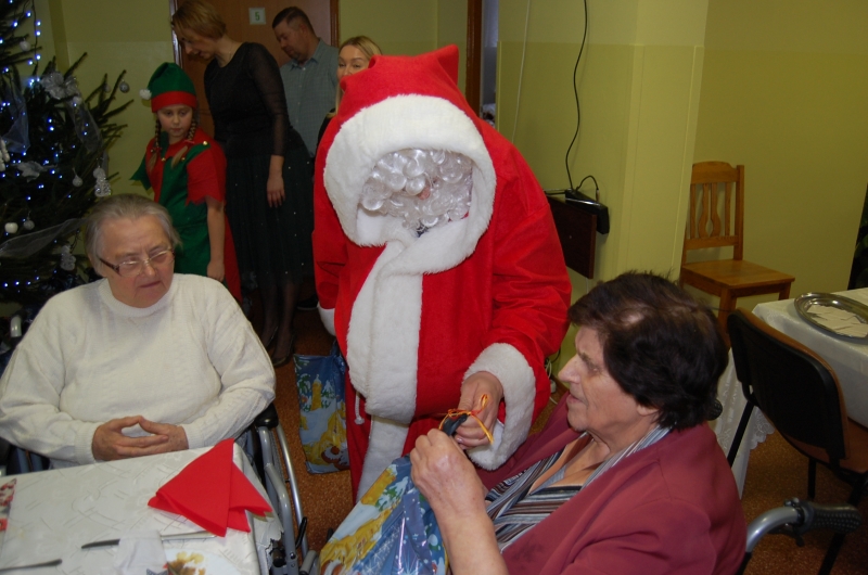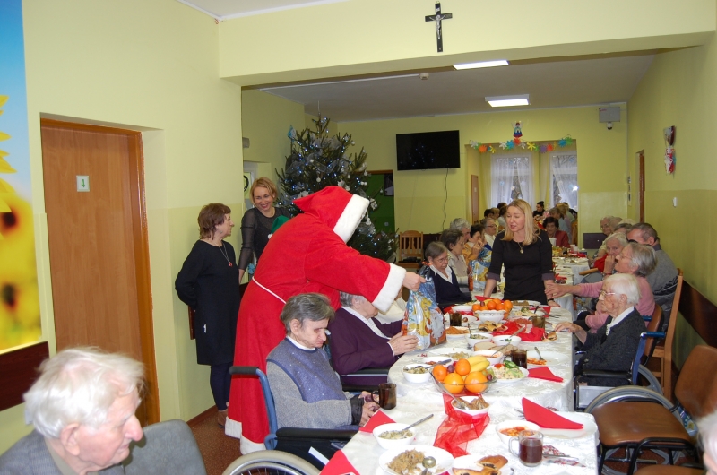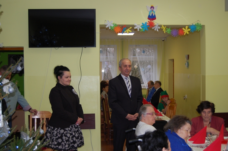 Jak co roku 24 grudnia wszyscy wspólnie zasiadamy przy stole i obchodzimy te piękne święta. Na uroczystość Wigilijną w naszym domu przybyli: Starosta Świecki -Pan Franciszek Koszowski, Wójt Gminy Pruszcz – Pan Dariusz Wądołowski, były Przewodniczący Zgromadzenia Związku Gmin – Pan Zbigniew Jagła, Kierownik Gminnego Ośrodka Pomocy Społecznej – Pani Magdalena Jaworska, Pani doktor – Danuta Jarosz, Ksiądz Proboszcz – Jerzy Mroczyński oraz Ksiądz Franciszek Kamecki oraz Wolontariusze: Krzysztof Pardo, Rafał Stachowski i Maja Rzondtkowska. Dyrektor Sylwia Siadkowska powitała wszystkich zgromadzonych Gości, Mieszkańców i Pracowników domu, złożyła serdeczne życzenia aby każdy czuł się u nas jak w prawdziwym domu i aby nie zabrakło nikogo z nas za rok przy tym stole. Życzenia składali również Wójt Gminy Pruszcz oraz Starosta Świecki, życząc wszystkim dużo zdrowia. Kuchnia przygotowała pyszne potrawy wigilijne, oprawę artystyczną, kolędy i prezenty przygotowały Panie z terapii zajęciowej: Magdalena Bauza oraz Barbara Hiller. Był też Gwiazdor, który jak co roku wszystkich obdarował prezentami.