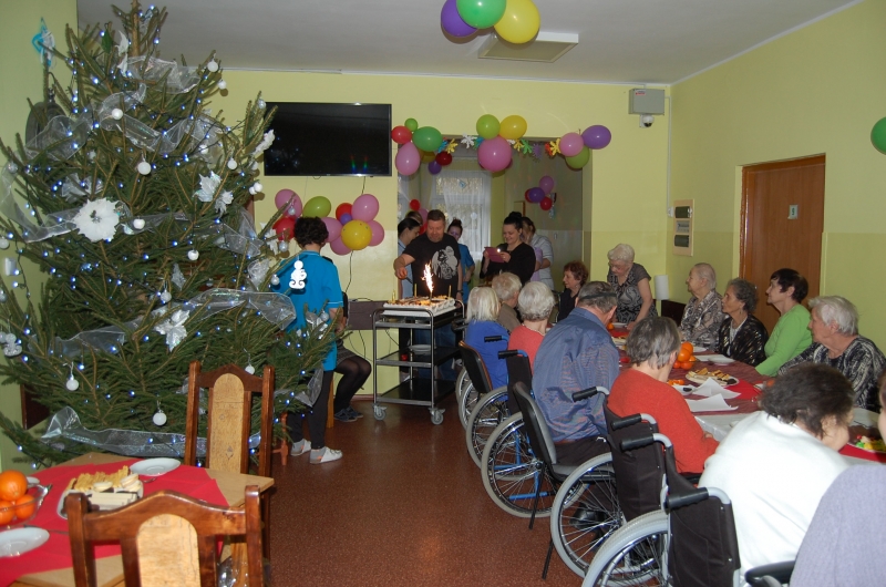 W dniu 29 grudnia podsumowaliśmy mijający rok 2017. Dyrektor Sylwia Siadkowska wspomniała o wykonanych inwestycjach, remontach jakie przeprowadzono w domu oraz o planach na przyszłość. Wszystkim Mieszkańcom i pracownikom złożyła życzenia na nadchodzący Nowy Rok 2018. Był pyszny tort z okazji powitania Nowego Roku, lampka szampana oraz wspaniała zabawa taneczna. Wszyscy wesoło spędziliśmy wspólnie te ostatnie godziny Starego 2017 Roku. Tego też dnia obchodziliśmy Urodziny Mieszkańców,którzy urodzili się w miesiącu grudniu. Wszystkim Solenizantom życzymy zdrowia!