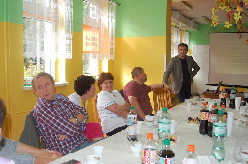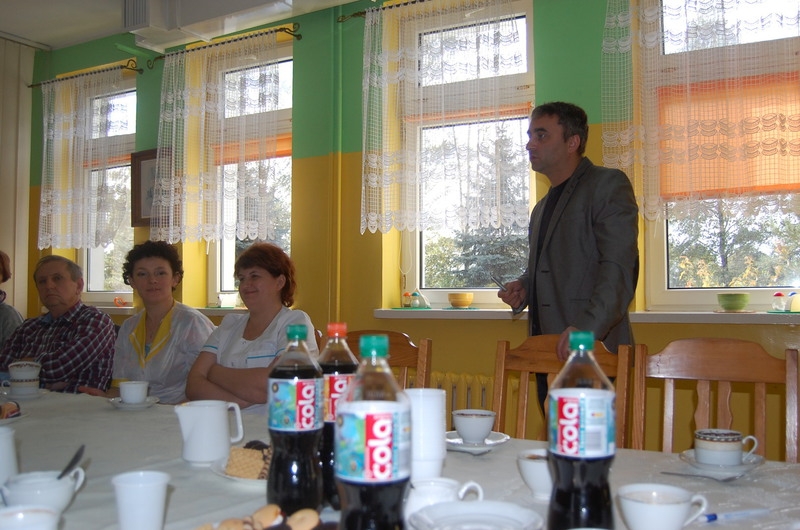 Szkolenie przeprowadziło Centrum Szkolenia i Promocji KREATOR ze Świecia. Atrakcją był symulator odczuć starczych, dzięki któremu mogliśmy przenieść się w podróż do przyszłości i na własnej skórze odczuć pewne ograniczenia narzucone przez ciało wraz z upływem lat. Symulator idealnie odwzorowuje uczucie niedogodności spowodowane starzeniem się narządu ruchu, wzroku i słuchu. Zestaw zawiera ograniczniki na każdy staw: łokciowy, kolanowy, palce, ochraniacz pleców, obciążniki na nadgarstki i kostki, rękawiczki, okulary zawężające pole widzenia, stopery do uszu oraz laskę. Wymienione elementy powodują utrudnienia w poruszaniu stawami kolanowymi i łokciowymi, natomiast obciążniki na nadgarstkach i kostkach osłabiają siłę mięśni, rękawiczki osłabiają zmysł dotyku i utrudniają chwytanie przedmiotów. Ochraniacz pleców pochyla sylwetkę ku przodowi. Okulary symulują zaćmę i powodują, że osoba traci widzenie peryferyjne, a ostrość wzroku słabnie, natomiast starcze przytępienie słuchu jest symulowane za pomocą stoperów tłumiących dźwięki o wysokiej częstotliwości.
