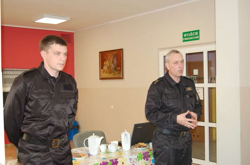 Dnia 5 grudnia kpt. Tomasz Sadecki Naczelnik Wydziału O-K-R KP PSP i str. Mateusz Orłowski p.o. Młodszy Technik Wydziału O-K-R KP PSP w ramach kampanii społecznej Komendy Głównej Państwowej Straży Pożarnej, pod hasłem ”Czujka na straży Twojego bezpieczeństwa” wygłosili wykład w naszym ośrodku na temat zagrożeń związanych z sezonem grzewczym. W szczególności zwrócili uwagę na niebezpieczeństwo stwarzane przez tlenek węgla i toksyczne gazy pożarowe. Omówili i pokazali czujki czadu i dymu, oraz przekazali wskazówki co do miejsc, w których powinny być zainstalowane aby należycie spełniały swoje rolę.