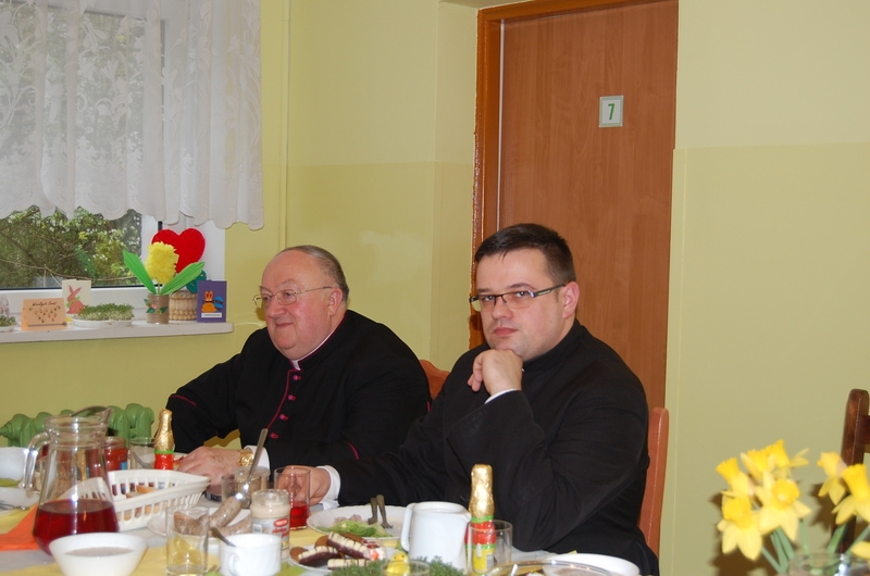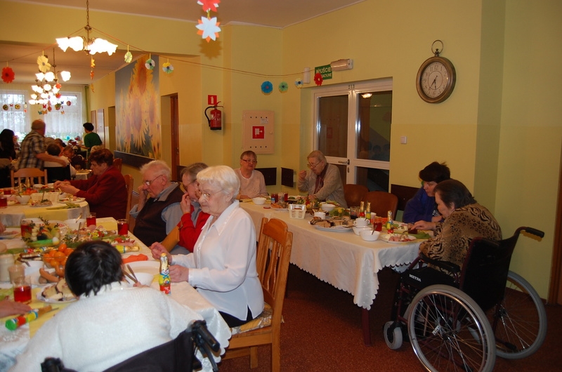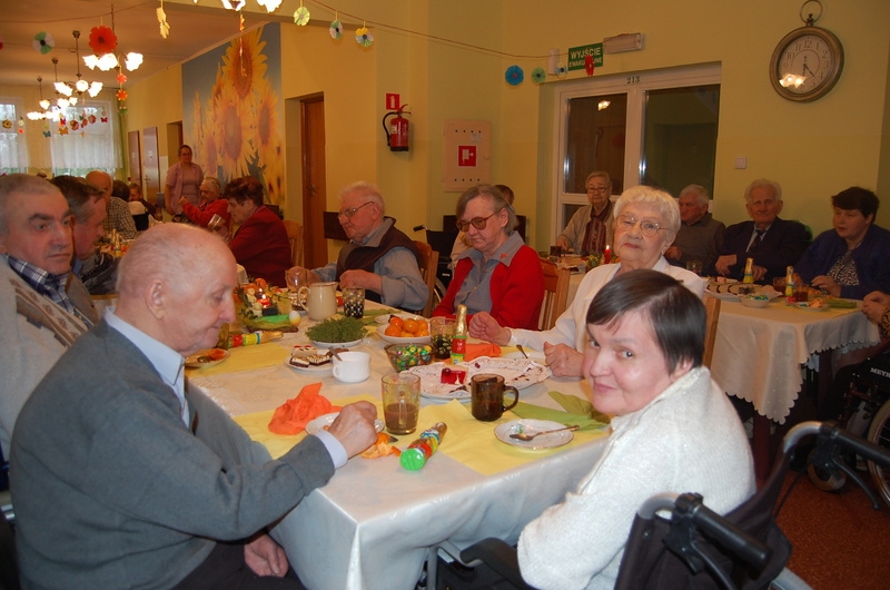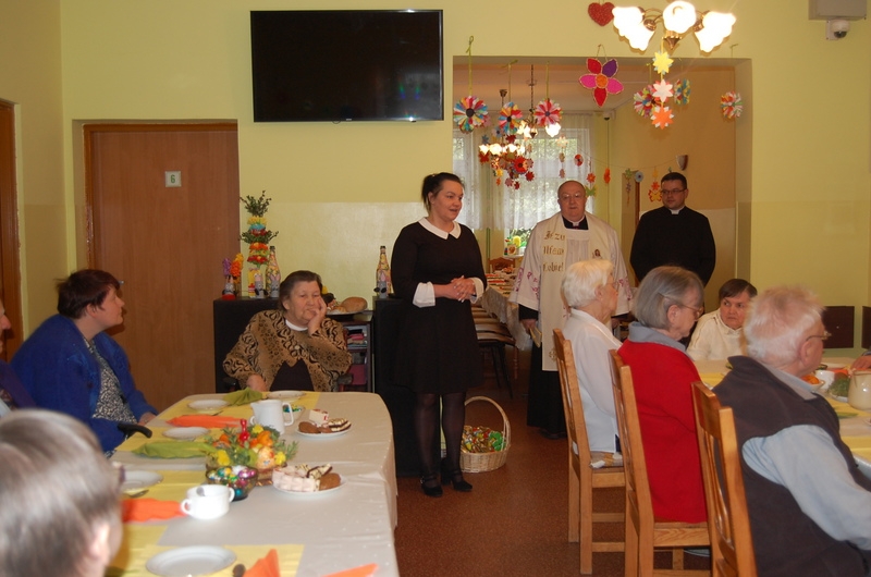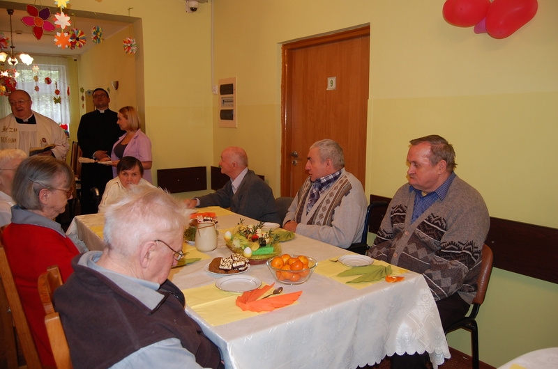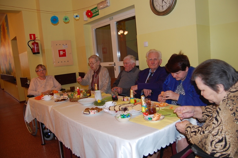 Dnia 15 kwietnia odbyła się w naszym domu kolacja wielkanocna.Wielkanoc to najstarsze i najważniejsze święto chrześcijańskie upamiętniające misterium paschalne Jezusa Chrystusa: jego mękę, śmierć i zmartwychwstanie. Tego dnia symbolicznie podzieliliśmy się jajkiem i życzyliśmy sobie wiele życzliwości, miłości i pogody ducha na cały rok. Gośćmi na naszej kolacji byli Ksiądz Proboszcz Jerzy Mroczyński oraz Wikariusz Marek Jażdżewski.