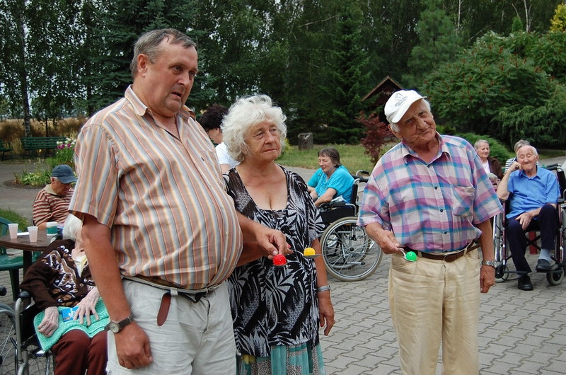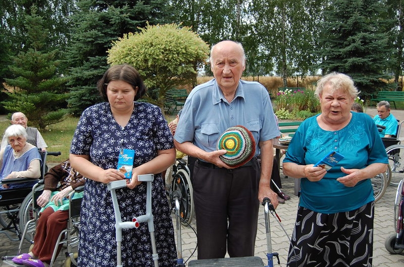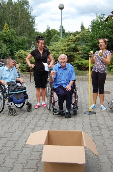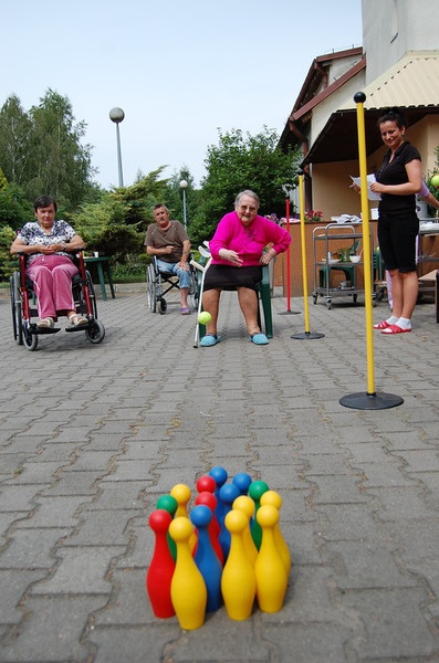 Dnia 24 lipca bawiliśmy się przy pięknej pogodzie, przy deserach owocowych i pysznych kiełbaskach z grilla. W tym dniu Urodziny obchodziło sześcioro Mieszkańców: Pani Aniela, Pani Urszula, Pani Małgosia oraz Panowie Grzegorz, Bolesław i Janusz. Wszyscy głośno zaśpiewaliśmy Sto lat…. Była muzyka przy której świetnie się bawiliśmy i mnóstwo zabaw w tym konkursy i zawody sprawnościowe.