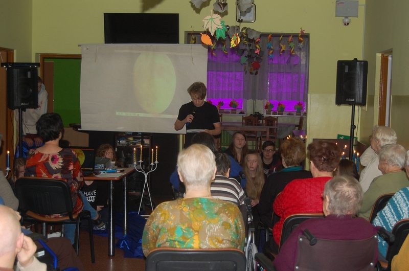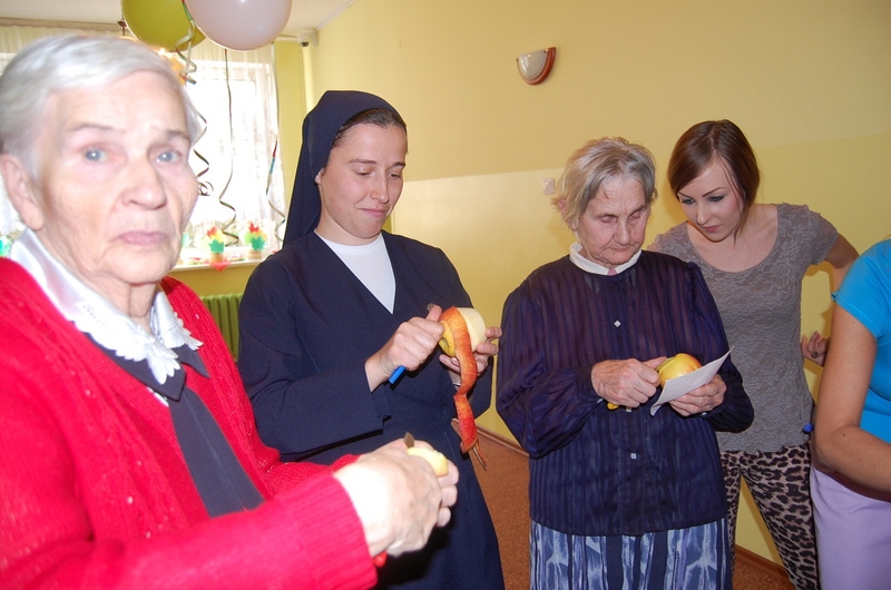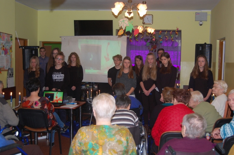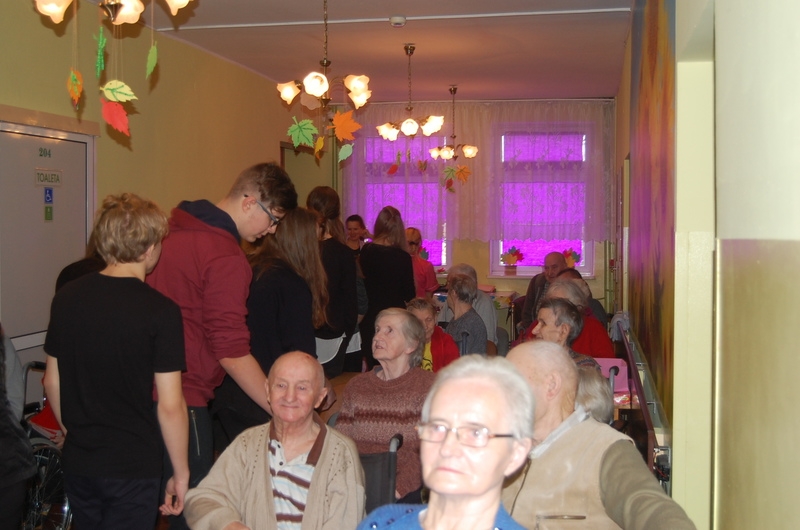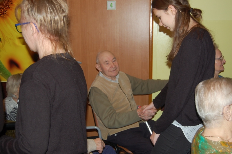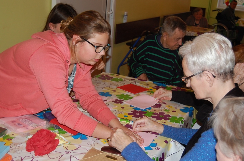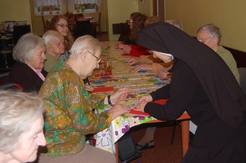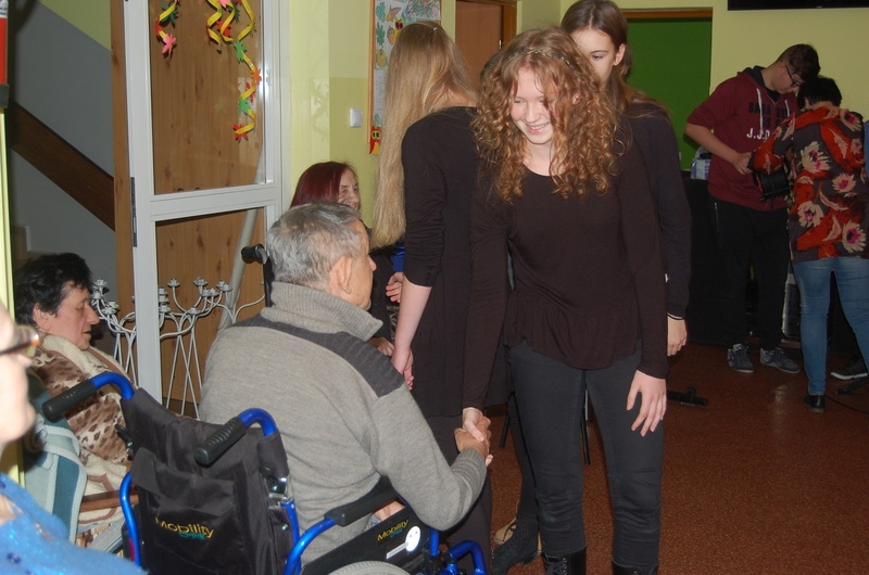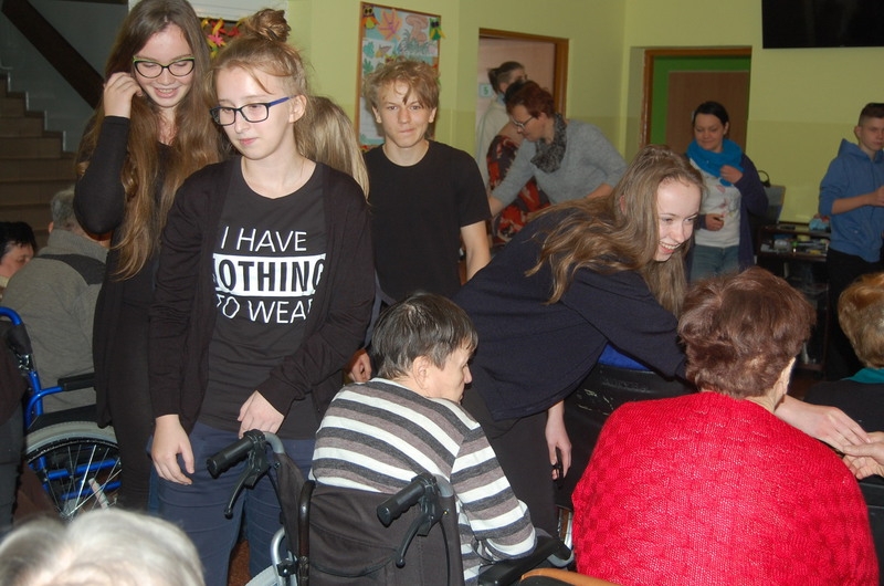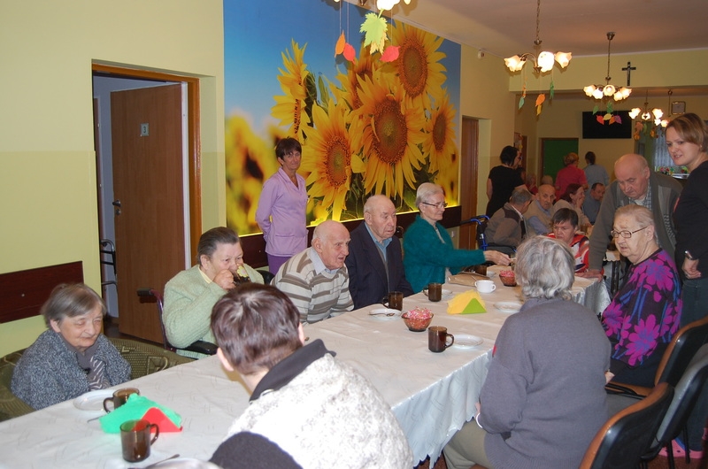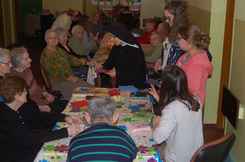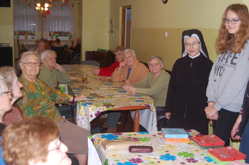 Dnia 16 listopada odwiedzili nas Wolontariusze- młodzież ze szkolnego koła Caritas przy Gimnazjum w Zbrachlinie. Pod okiem swojej opiekunki, siostry Imeldy ze Zgromadzenia Sióstr Pasterek w Topolnie zrealizowali oni projekt pt.:,, Lepszy świat przez wolontariat”,dofinansowany przez Caritas Diecezji Pelplińskiej. W ramach tego projektu młodzi wolontariusze zorganizowali u nas w domu zajęcia plastyczne. Wspólnie z naszymi Mieszkańcami zajęli się przygotowaniem dekoracji na świąteczny stół oraz świątecznych ozdób. Był słodki poczęstunek i wspólny śpiew znanych pieśni i piosenek, który rozjaśnił twarze uśmiechem. Nie kryliśmy radości z wizyty i zapraszamy ponownie.