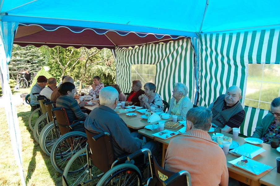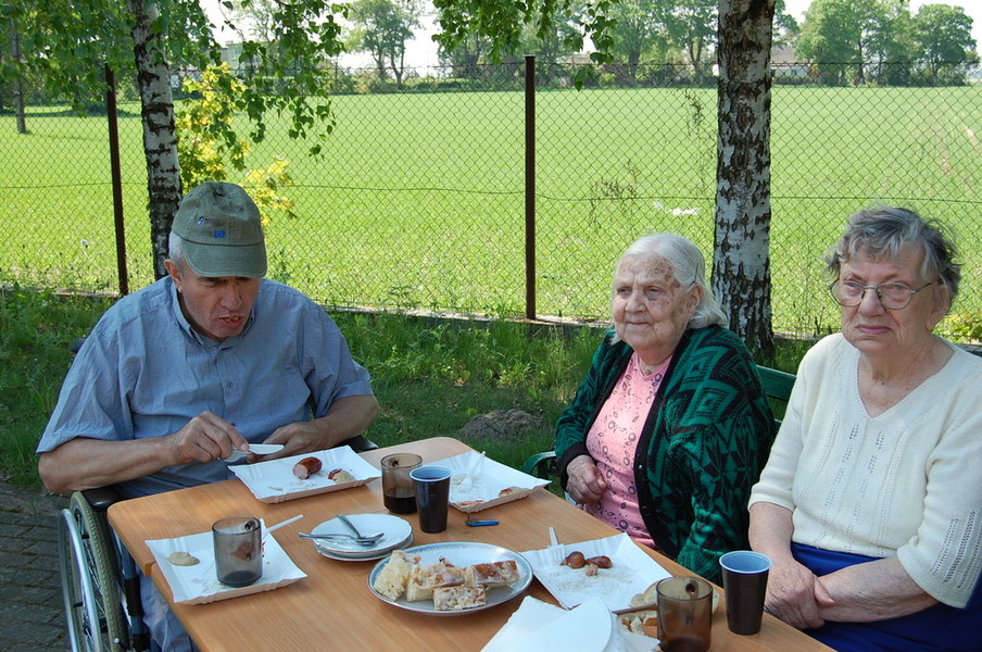 16 maja zaplanowaliśmy grilla na świeżym powietrzu, połączonego z Urodzinami Miesiąca. W maju Urodziny obchodziły dwie panie, Pani Gertruda oraz Pani Aleksandra. Tym razem pogoda nam dopisała i wszystko odbyło się zgodnie z planem.