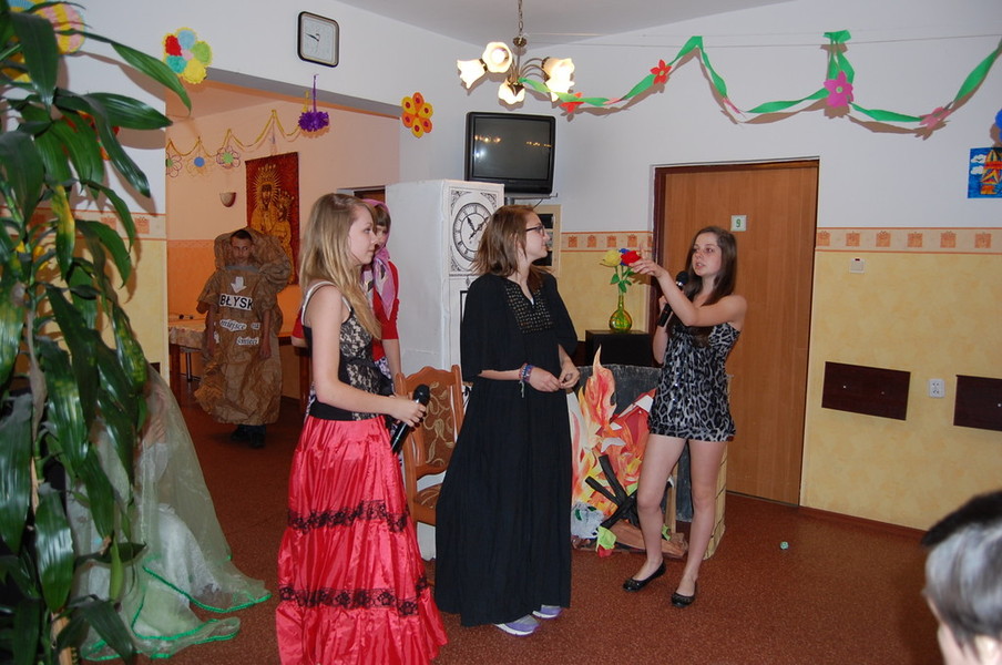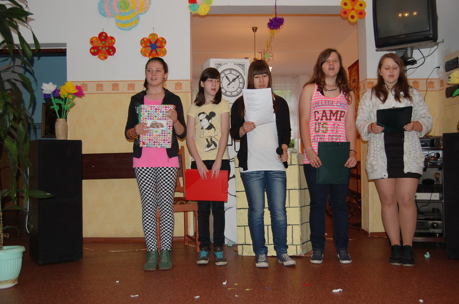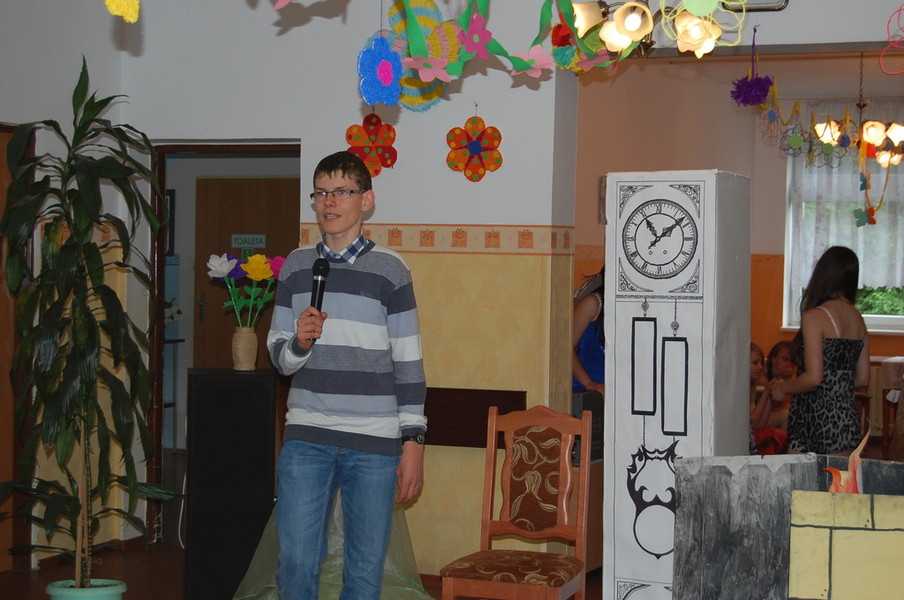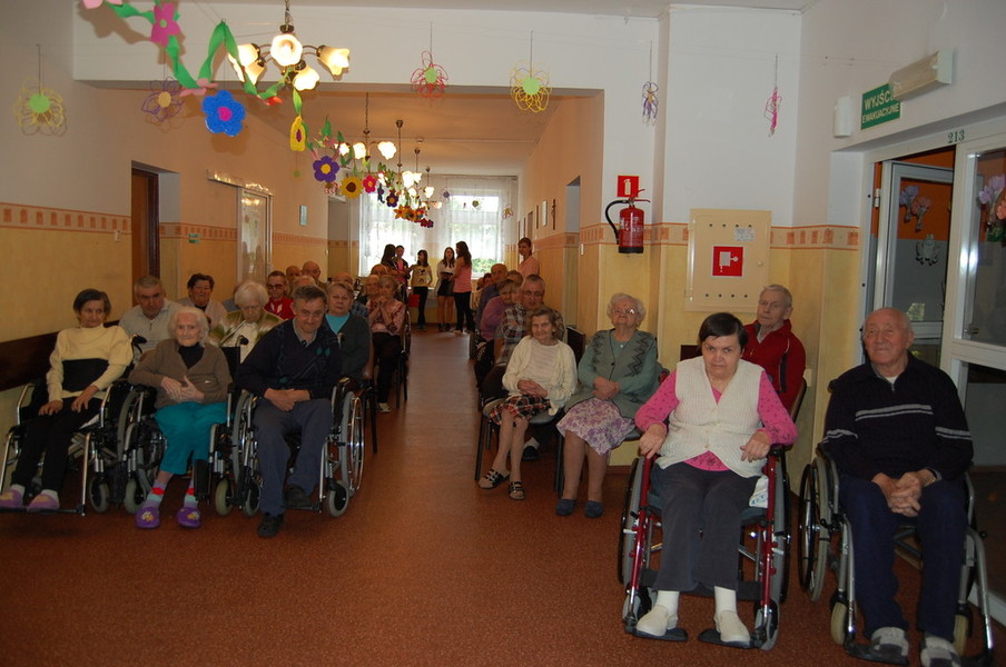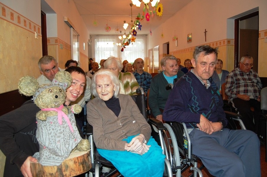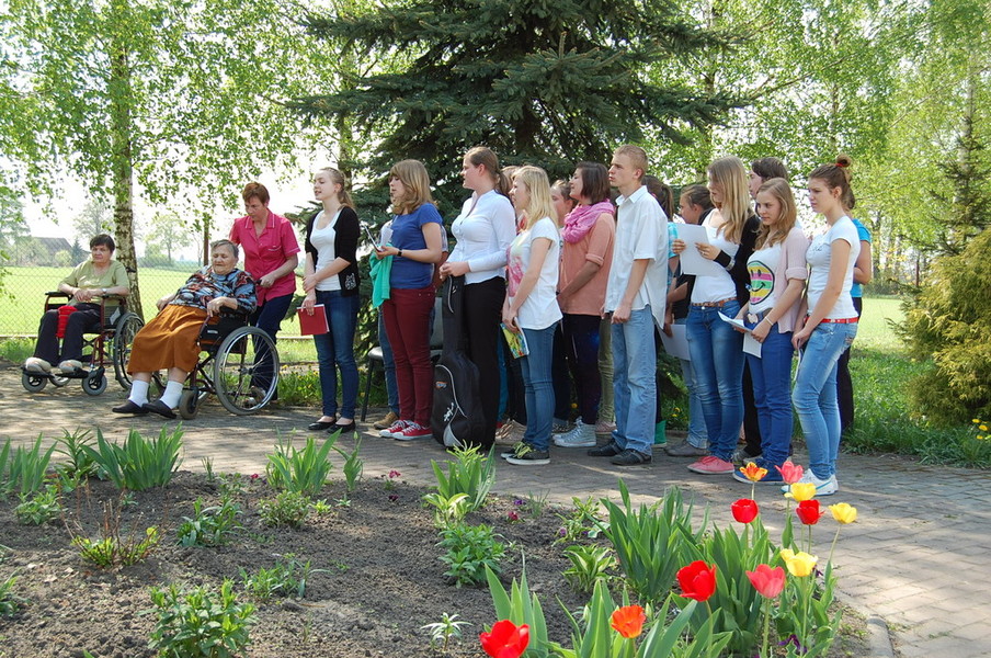 28 maja zawitali do naszego domu Gimnazjaliści z klasy I i II Gimnazjum nr 1 im. Mikołaja Kopernika w Pruszczu. Uczniowie klasy I zaprezentowali występ z okazji Dnia Matki, natomiast II klasa wykazała swój talent artystyczny w przedstawieniu kształtującym postawy ekologiczne pt. ” Balladyna w 3 D”.  Na zakończenie młodzież wspólnie z Mieszkańcami zaśpiewała piosenkę i wręczyła nam prezent w postaci pięknego Misia ze słomy.