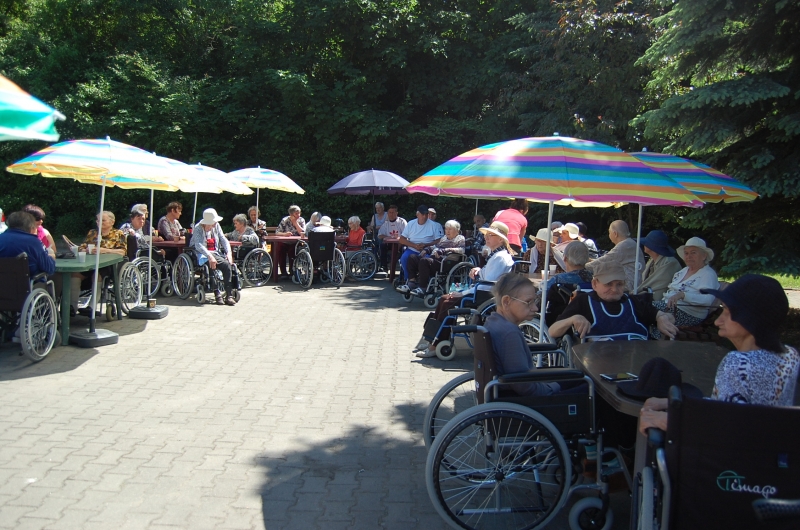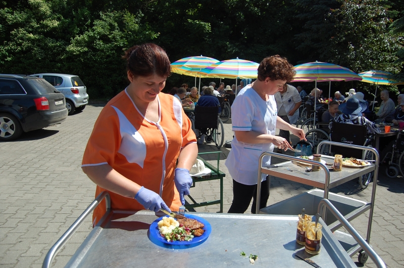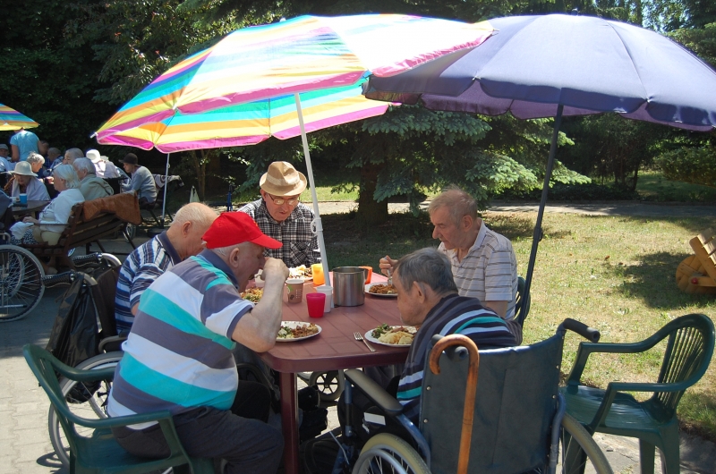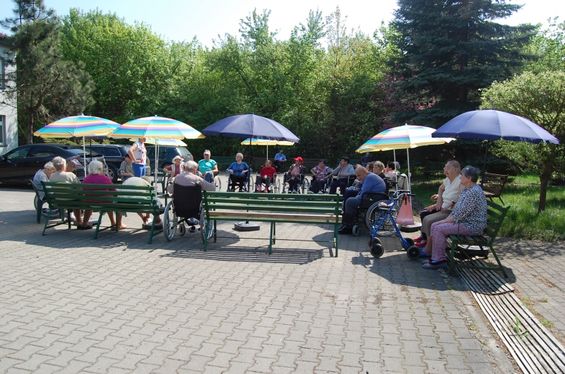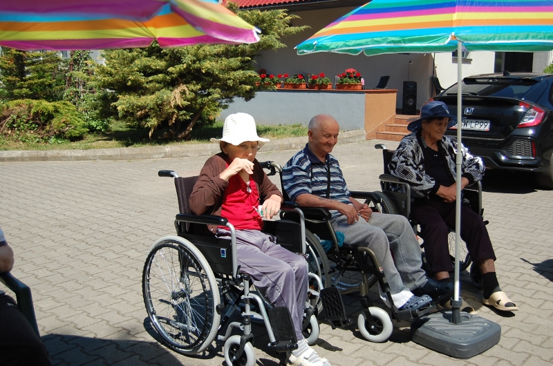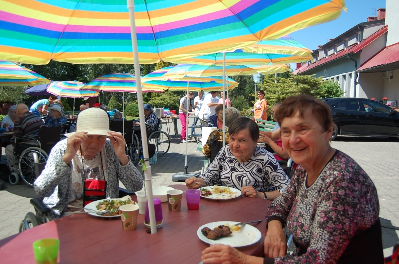 Dnia 10 maja obchodziliśmy Urodziny Mieszkańców z miesiąca maja. Tego dnia obiad w postaci grilla odbył się na świeżym powietrzu. Nie zabrakło też słodkiego poczęstunku, lodów oraz dobrej zabawy. Gośćmi specjalnymi były dwie panie, które wprowadziły nas w wyjątkowo radosny nastrój. W roli pań odwiedzających nasze terapeutki: Magda i Marta.