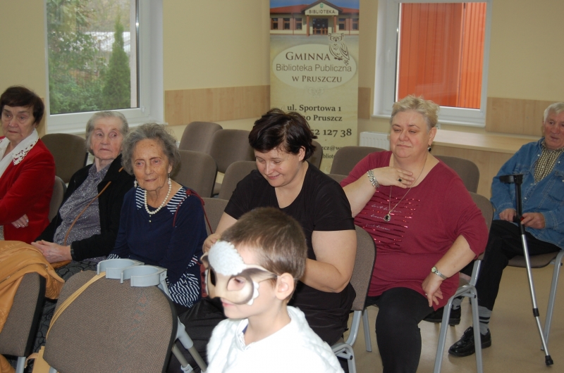 W dniu 20 października gościliśmy w Gminnej Bibliotece Publicznej w Pruszczu na występie, które przedstawiły dzieci z Przedszkola w Pruszczu. Przed występem w miłej atmosferze delektowaliśmy się kawą w czytelni Biblioteki. Występ najmłodszych bardzo nam się podobał, a na zakończenie otrzymaliśmy upominek w postaci wachlarza.