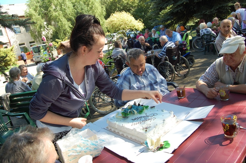 25 sierpnia ze względu na ładną pogodę odbył się w naszym domu grill oraz Urodziny trojga Mieszkańców. Jeden z Mieszkańców – Pan Sylwek zamówił tort urodzinowy aby poczęstować Mieszkańców, czym sprawił wszystkim słodką niespodziankę. Życzymy naszym Solenizantom zdrowia!!!