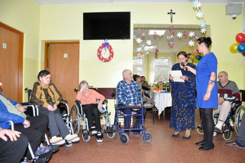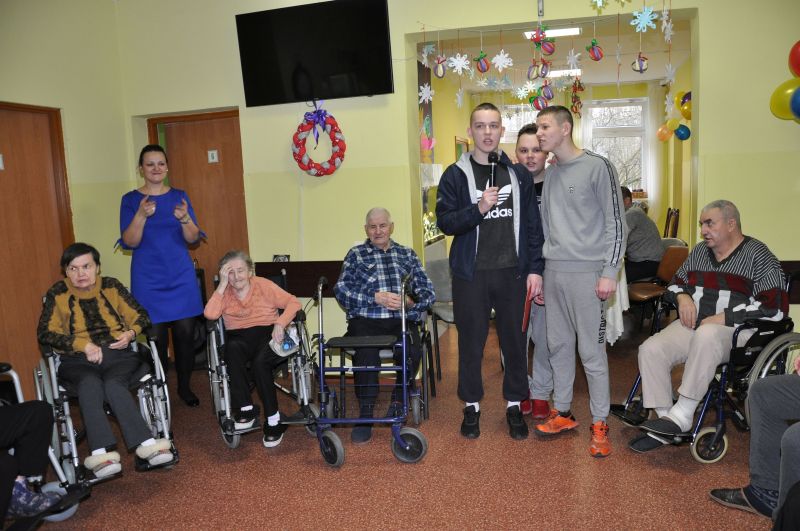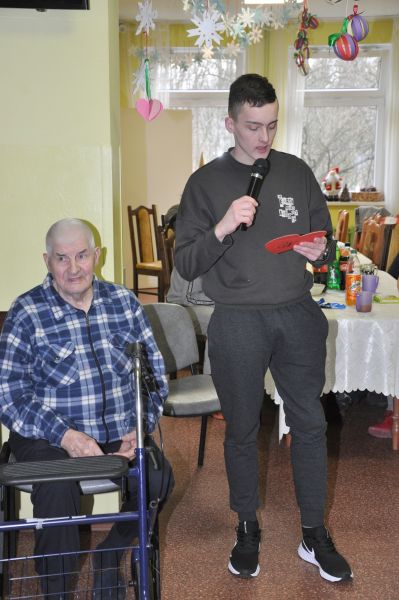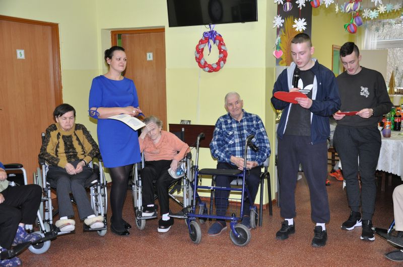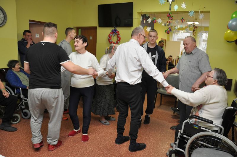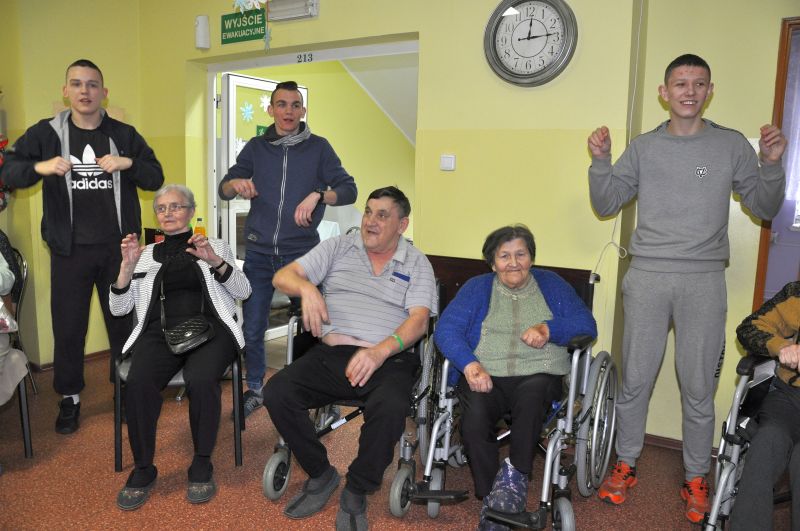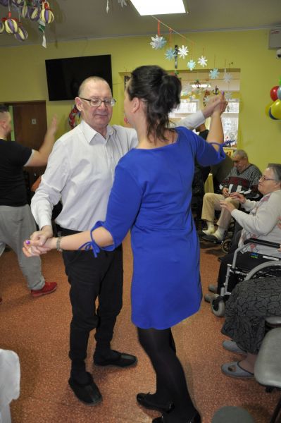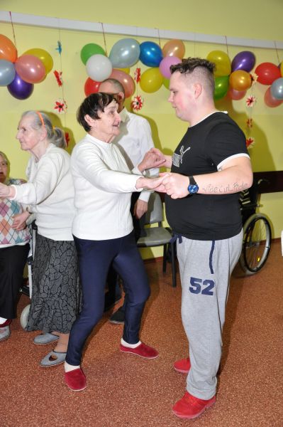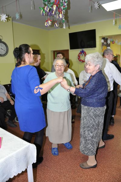 Dnia 20 stycznia obchodziliśmy w naszym domu dzień babci i dziadka. Po raz kolejny odwiedziła nas młodzież z Zakładu Poprawczego w Świeciu, która nie tylko chętnie pomagała kelnerując przy posiłkach ale także przy porządkach i chętnie uczestniczyła w zabawach z mieszkańcami. W ramach wolontariatu oprawę muzyczną i dawkę dobrego humoru zapewnił Pan Andrzej Smeja. Z Jego inicjatywy młodzież i pracownicy przebrali się za Tercet Egzotyczny oraz kwintet z Italii. Dodatkową atrakcją w tym dniu była wizyta kosmetyczek z Bydgoszczy Pani Joanny i Darii, które również charytatywnie wykonały manicure naszym paniom. Wszystkim, którzy przyczynili się do tego aby każda z babć i dziadków poczuły się w tym dniu wyjątkowo, serdecznie dziękujemy.