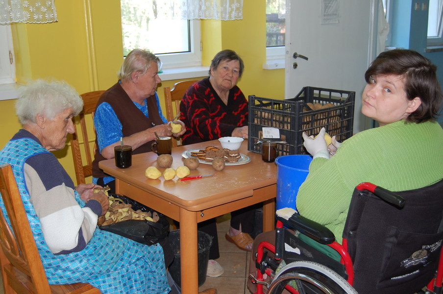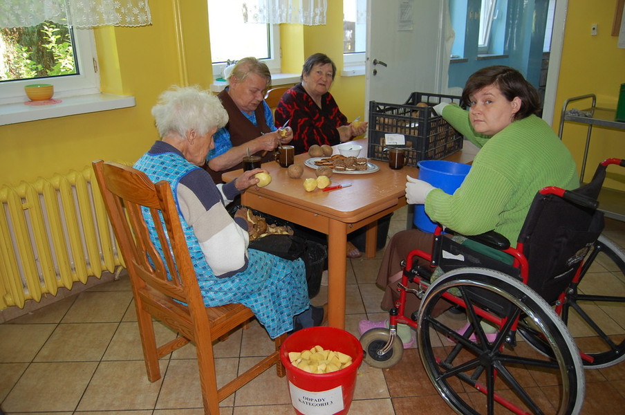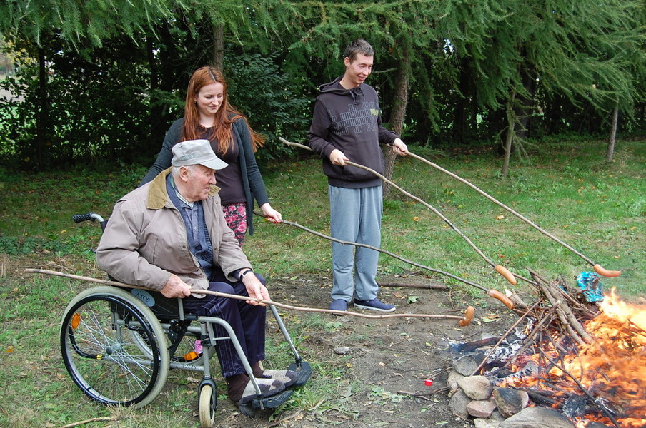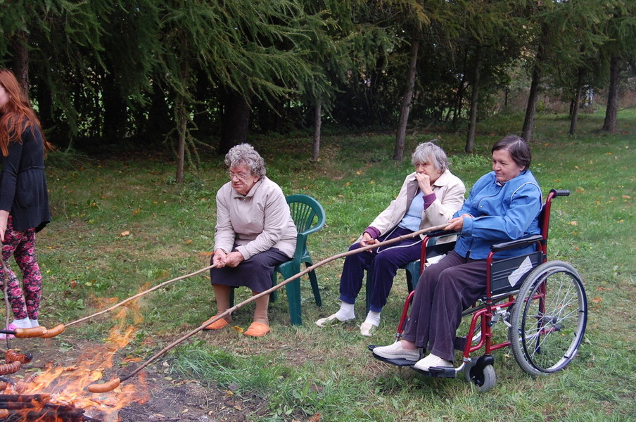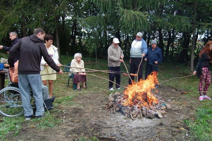 Dnia 24 września obchodziliśmy w naszym Ośrodku Urodziny Mieszkańców. Była kawa i słodki deser. Po słodkim poczęstunku świętowaliśmy Dzień Pieczonego Ziemniaka przy ognisku. Oprócz pieczonych ziemniaków, piekliśmy kiełbaski oraz jabłka. Mimo pogody humory wszystkim dopisywały.